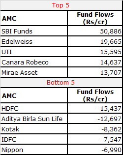 On the other hand, an exodus of funds from the liquid category (Rs 4,670 cr) and overnight category (Rs 3,890 cr), among others, led to UTI AMC finding a place among the AMCs with the highest net outflows during the quarter.