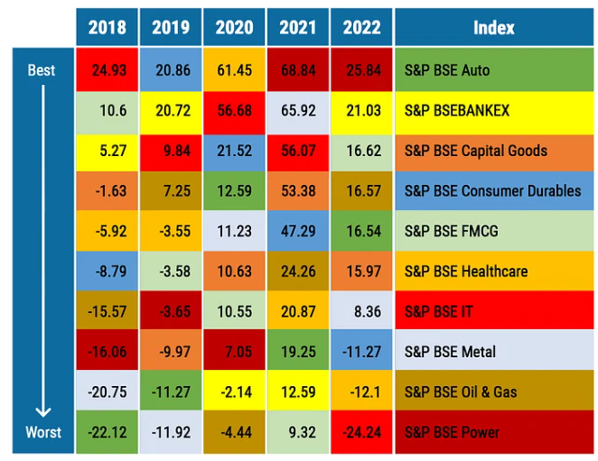 Technology is an example that I alluded to above. Tech stocks did exceedingly well in 2020 and 2021. Looking at the performance of the sector, investors heavily piled into tech funds. Last year was, in fact, the worst year for technology, relative to all the other sectors.