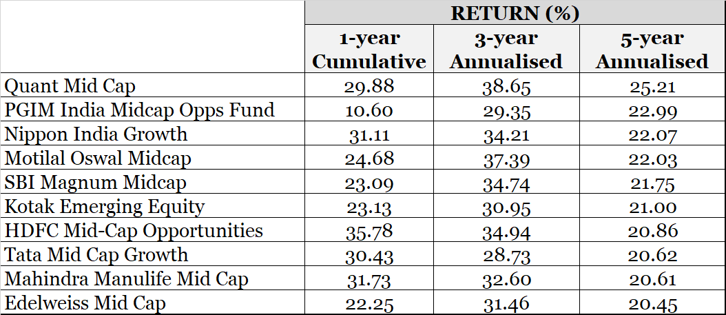This time, we are faced with a stellar mid-cap rally. Here's a look at the performance of mid-cap funds, as on October 16, 2023. These are the regular schemes of the growth plans.