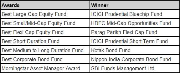 There are two types of Morningstar awards which are announced in India: the Morningstar Category Awards and the Morningstar Asset Manager Awards.